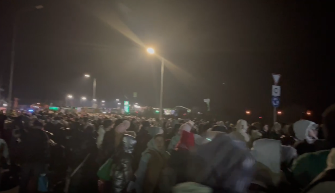 გრძელი რიგი და ღია ცის ქვეშ დარჩენილი მოსახლეობა – უკრაინელი დევნილები უსაფრთხო ტერიტორიაზე გადასვლას რამდენიმე საათის განმავლობაში ელოდებიან.